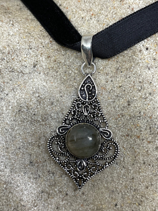 Vintage Rainbow Labradorite Choker Pendant Necklace