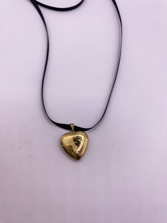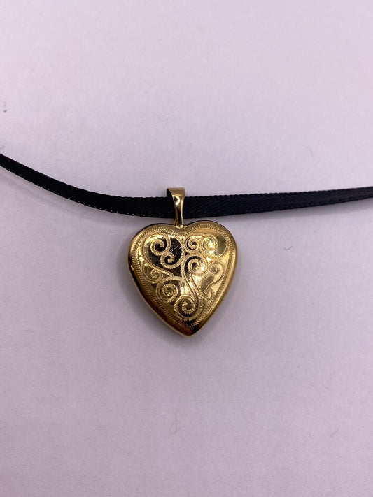 Vintage Heart Mother Child Locket Choker Gold Filled Necklace