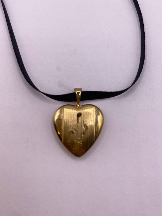 Vintage Heart Christian Footprint Locket Choker Gold Filled Necklace