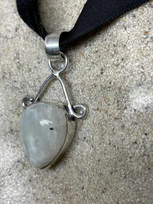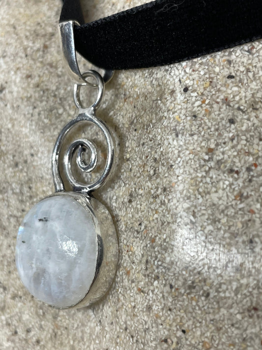 Vintage Rainbow Moonstone Choker Pendant Necklace