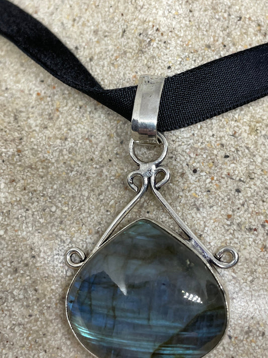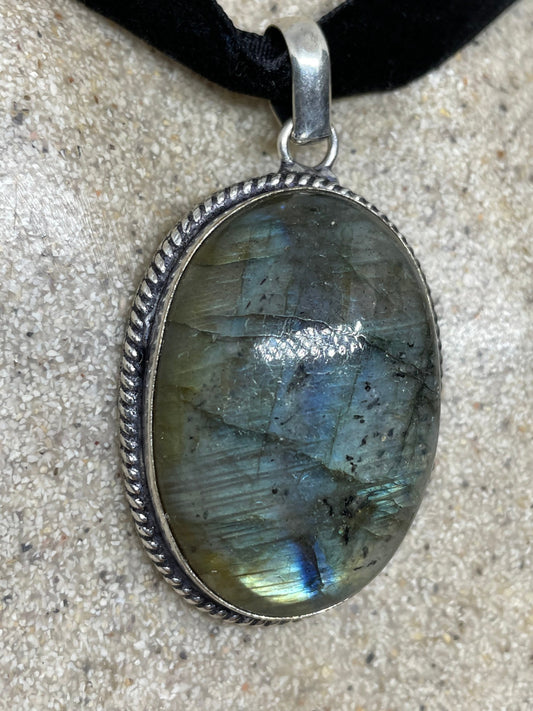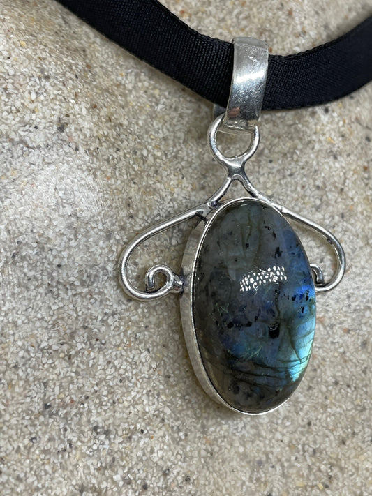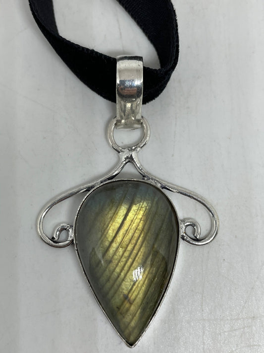 Vintage Rainbow Labradorite Choker Pendant Necklace
