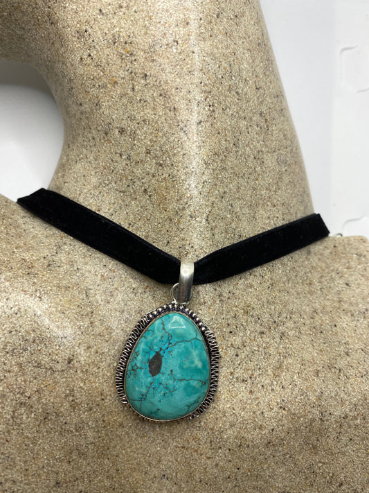 Vintage Silver Finished Genuine Tibetan Turquoise Choker Necklace