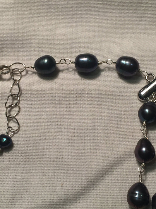 Hand Wrapped Pearl 3 strand grey Pearl Necklace