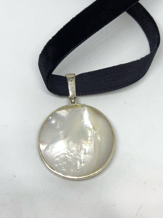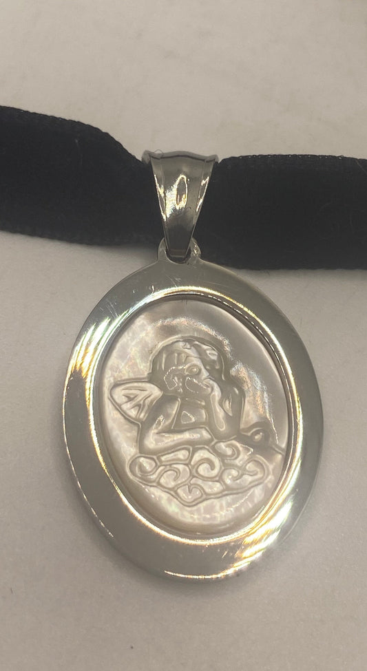 Vintage White Mother of Pearl Cameo Silver Stainless Steel Angel Pendant Necklace