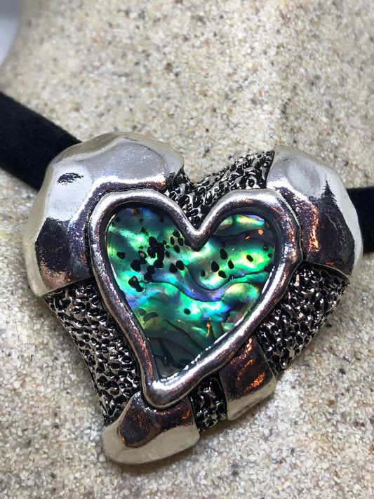 Blue Handmade Gothic Styled Silver Finished Genuine Abalone Valentines Heart Choker Necklace