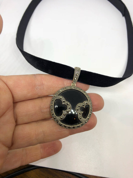 Vintage Marcasite 925 Sterling Silver Dangle Pendant Necklace