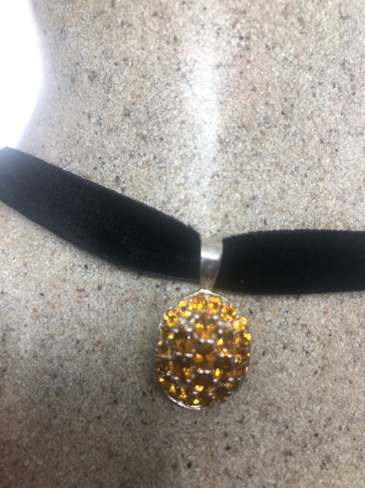 Vintage Golden Citrine Choker 925 Sterling Silver Pendant Necklace