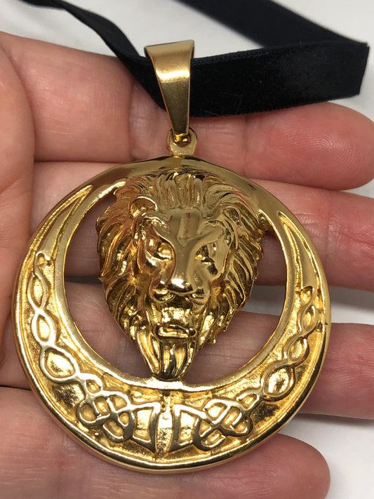 Vintage Handmade Golden Stainless Steel Gothic Celtic Lion Pendant Necklace