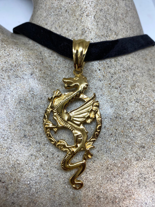 Vintage Handmade Golden Stainless Steel Gothic Celtic Dragon Pendant Necklace