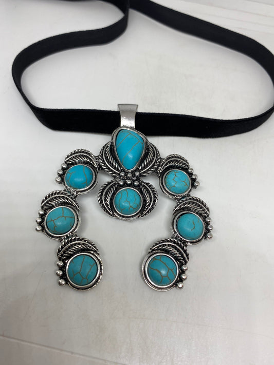 Vintage Southwestern Blue Howlite squash blossom Necklace