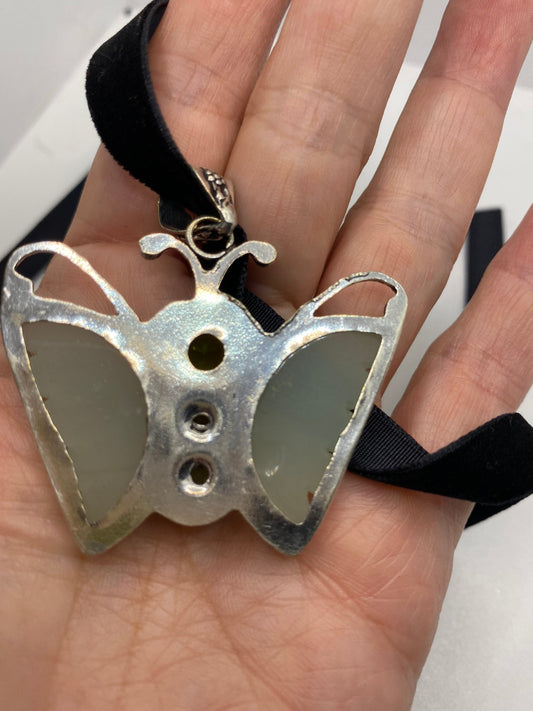 Vintage Green Chalcedony Butterfly Choker Necklace