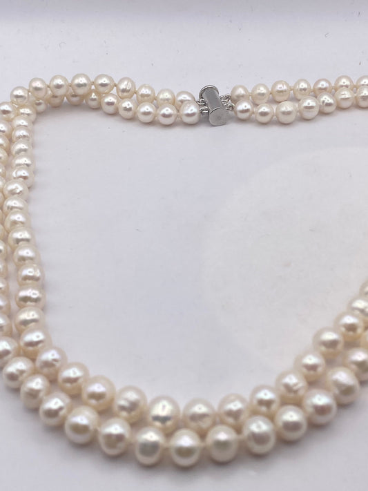 Vintage Hand Knotted Cream Pearl Double 17 in Necklace