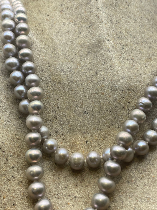 Vintage Hand Knotted Grey Pearl Double 16-18 in Necklace