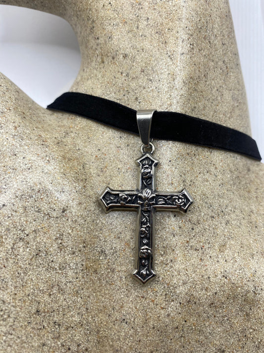 Vintage Skull Rose Stainless Steel Cross pendant necklace
