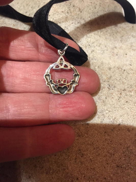 Vintage Handmade 925 Sterling Silver Claddaugh Deco Choker Necklace