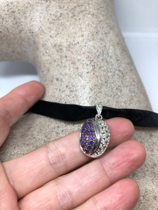 Vintage Handmade 925 Sterling Silver Genuine Peridot and Amethyst Antique Pendant Necklace