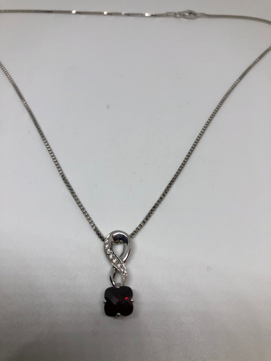 Vintage 925 Sterling Silver Genuine Garnet Antique Pendant Necklace