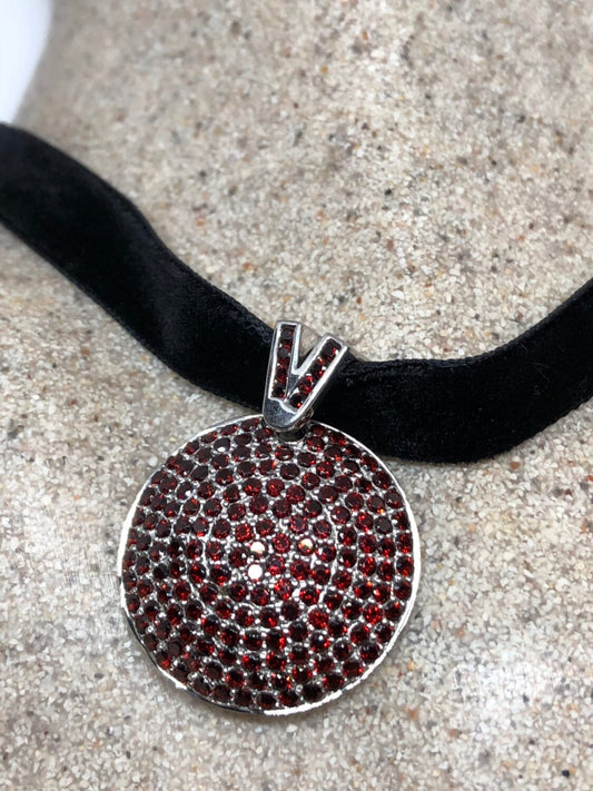 Vintage Handmade 925 Sterling Silver Genuine Garnet Antique Pendant Necklace