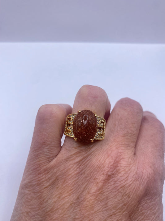 Vintage Goldstone Gold Sandstone Cocktail Ring