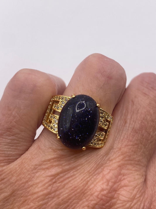 Vintage Black Goldstone Gold Sandstone Cocktail Ring