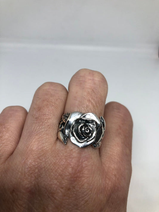 Vintage Rose Flower 925 Sterling Silver Antiqued Ring