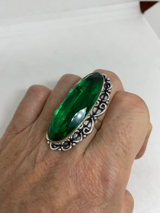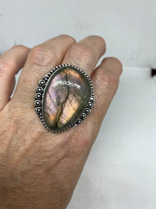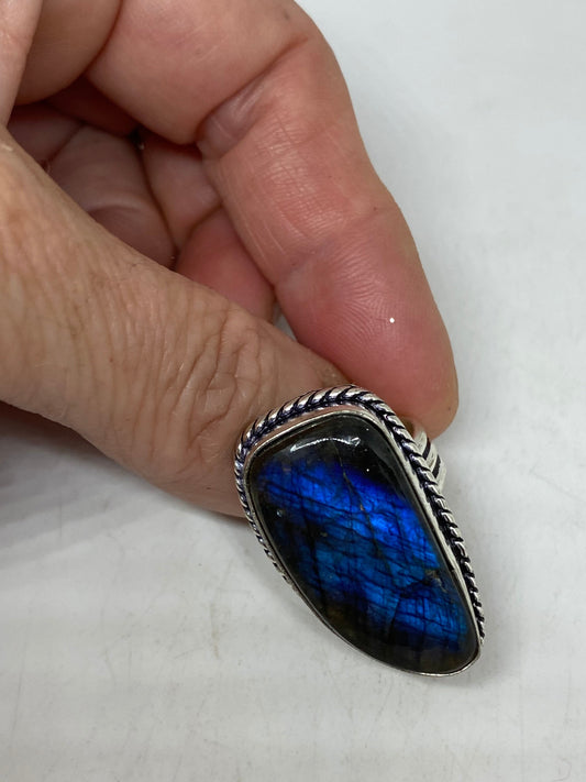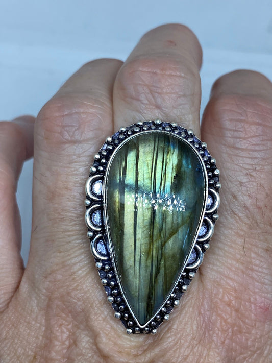 Vintage Large Blue Green Labradorite Stone Silver Ring