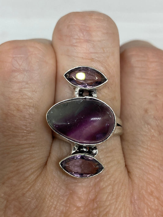Vintage Genuine Purple Amethyst and Fluorite Ring
