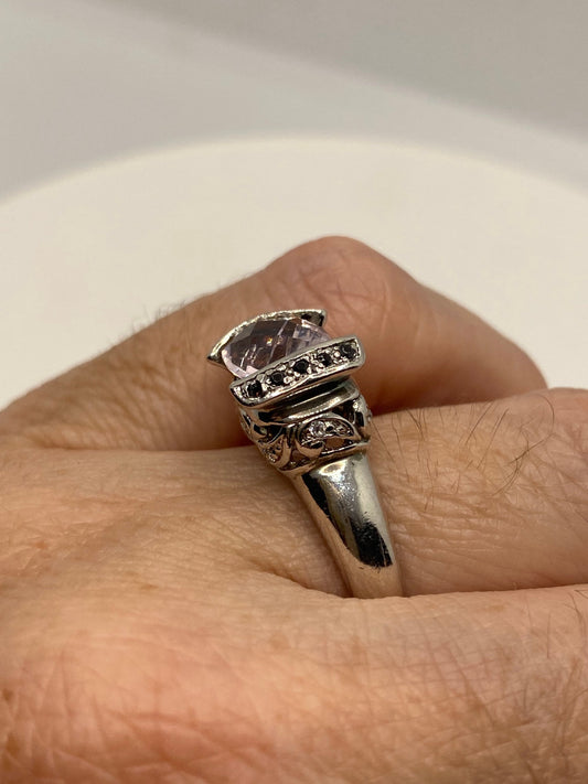 Vintage Pink Kunzite and white Sapphire Setting 925 Sterling Silver Gothic Ring