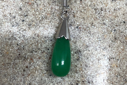 Antique Vintage Green Volcanic Glass Silver Dangle Earrings