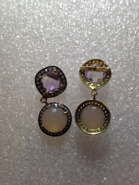 Vintage Genuine White Sapphire Mixed Gemstone Filigree Sterling Silver Dangle Earrings