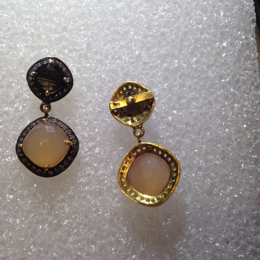 Vintage Rose Quartz 925 Sterling Silver Dangle Earrings