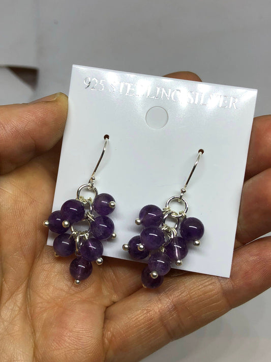 Vintage Handmade Sterling Silver Deep Amethyst Earrings