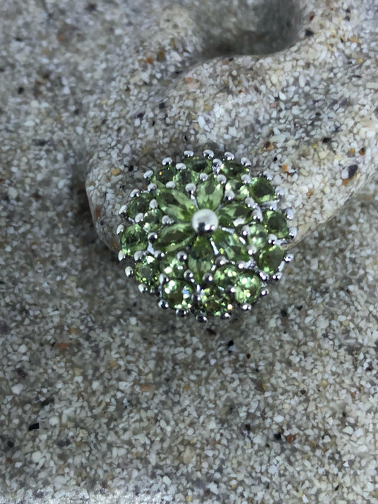Vintage Handmade Sterling Silver Genuine Green Peridot Stud button Earrings