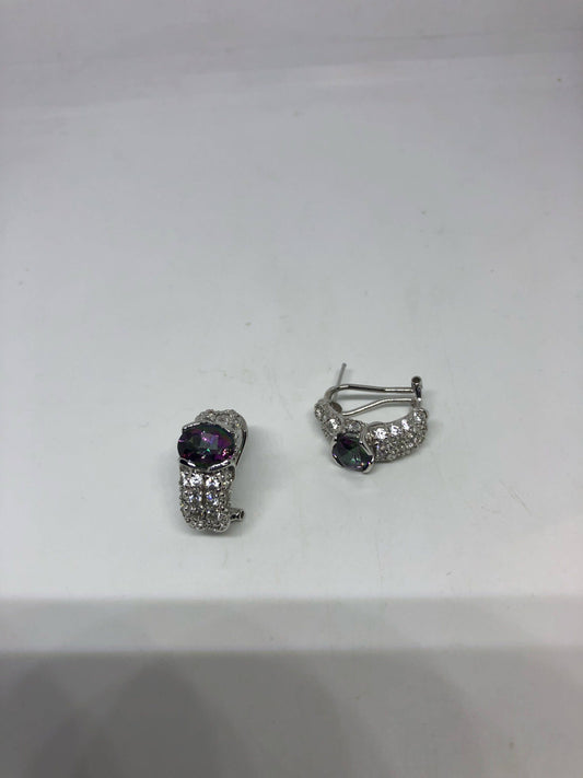 Vintage Blue Mystic Topaz Earrings 925 Sterling Silver Stud button