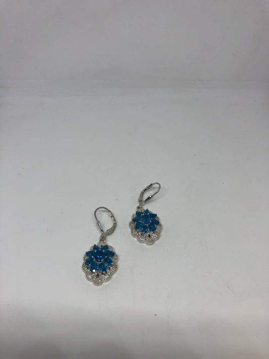 Vintage Blue Topaz Gemstone Filigree 925 Sterling Silver Earrings