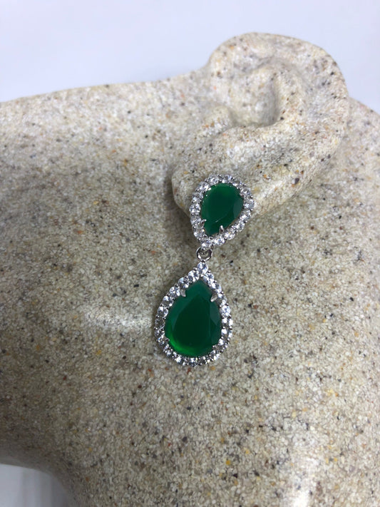 Green Quartz and Crystal Sterling Silver Vintage Earrings