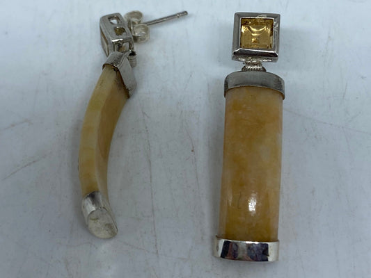 Vintage Genuine Yellow Yellow Jade and Citrine Gemstone Silver Earrings