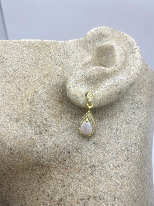 Vintage White Opal Earrings White Sapphire Golden 925 Sterling Silver