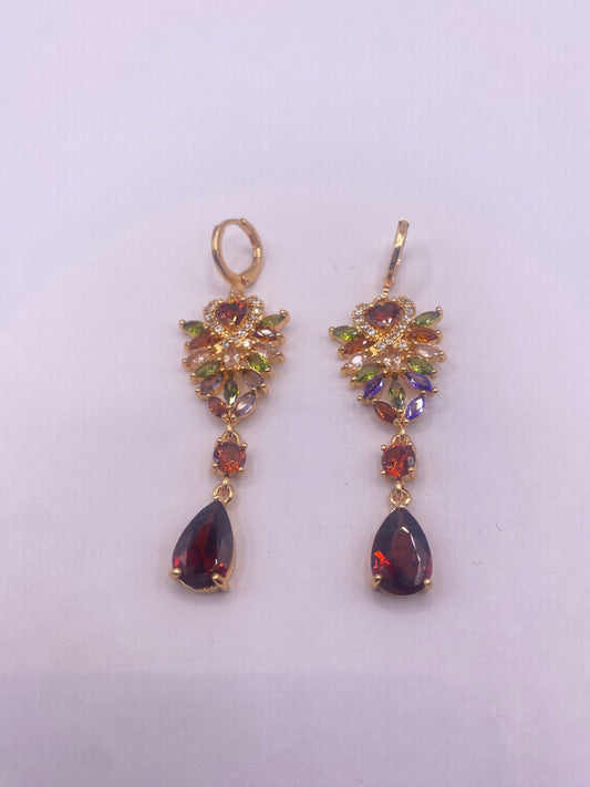 Vintage Genuine Mixed Cubic Zirconia Heart Rose Golden Chandelier Dangle Earrings