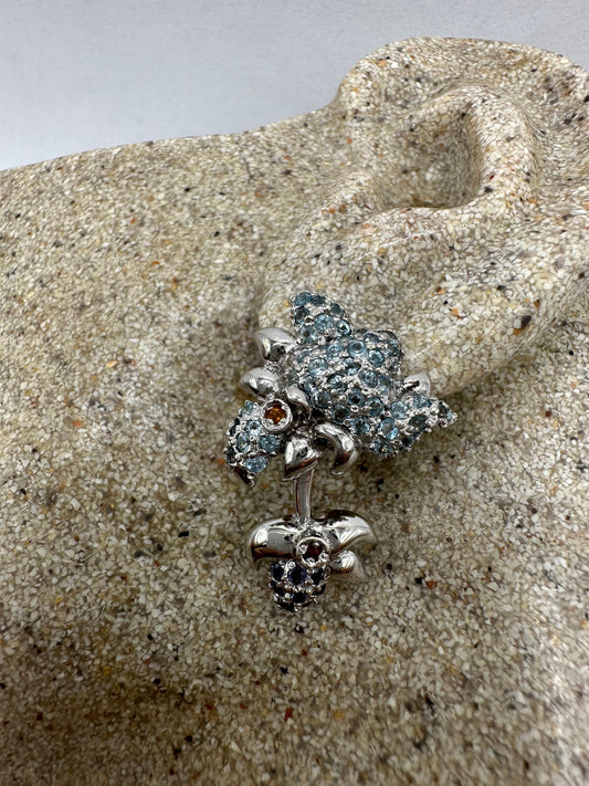 Vintage Mixed Genuine Blue Topaz Gemstone Filigree 925 Sterling Silver Earrings