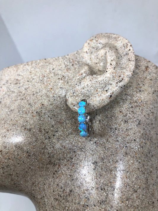 Vintage Blue Opal Earrings Cubic zirconia 925 Sterling Silver Hoop Dangle