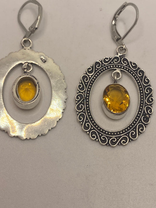 Vintage Handmade 925 Sterling Silver Baltic Yellow Gemstone Earrings