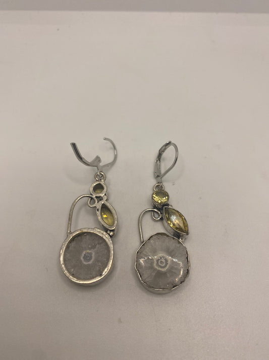 Vintage Citrine Onyx Geode Slice 925 Sterling Silver Lever Back Earrings