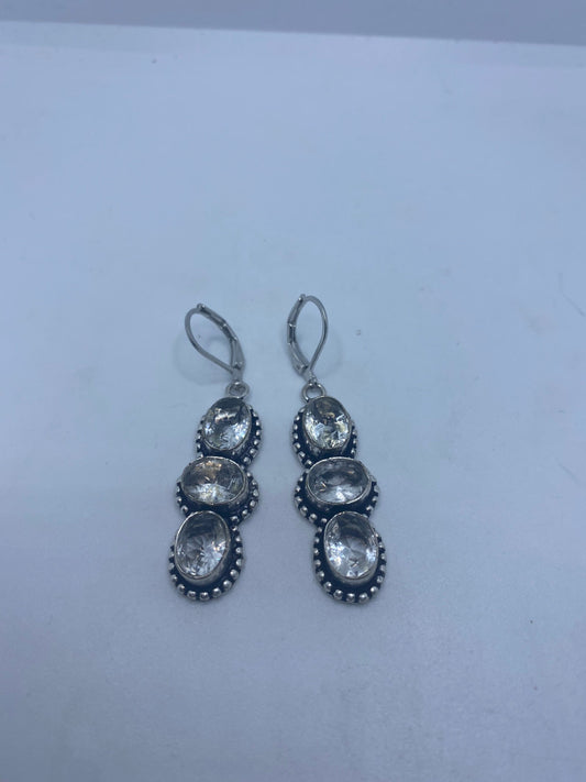 Vintage Citrine extremely pale almost Clear 925 Sterling Silver Lever Back Earrings