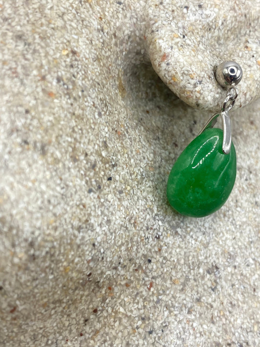 Vintage Fun Green Jade Gemstone 925 Sterling Silver Earrings
