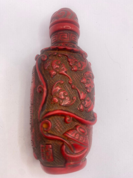 Vintage Dragon Bottle Snuff Perfume Flask Cinnabar Resin