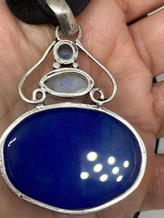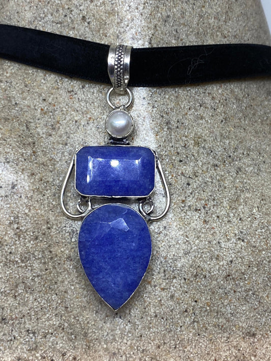 Vintage Blue Raw Sapphire Choker Pendant Necklace