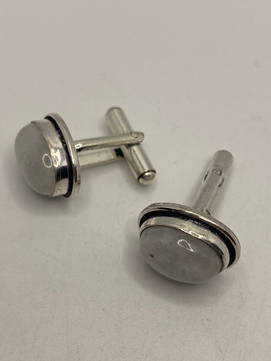Vintage Blue Rainbow Moonstone White Bronze Poison Pillbox Ring