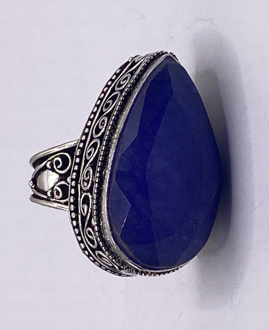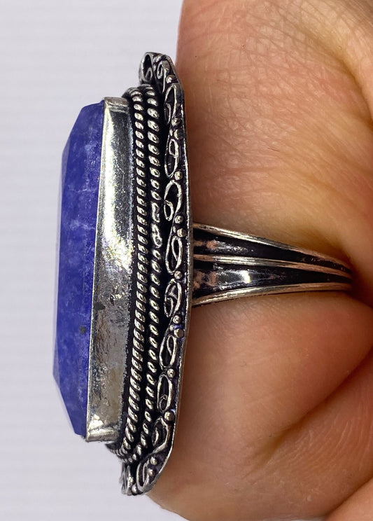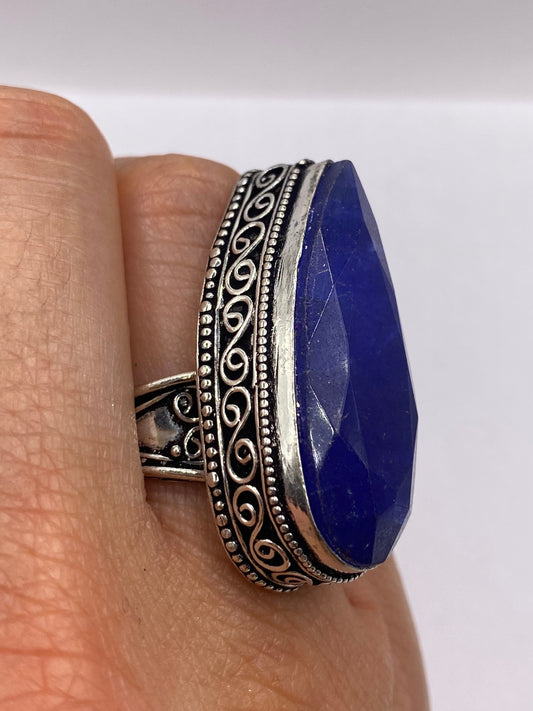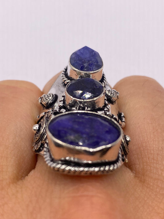 Vintage Blue Raw Sapphire Ring Boho Statement