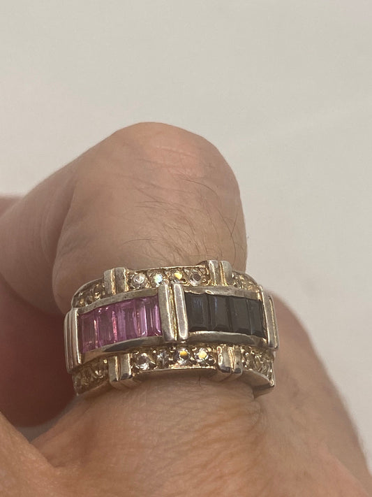 Vintage Blue Sapphire 925 Sterling Silver Cocktail Ring